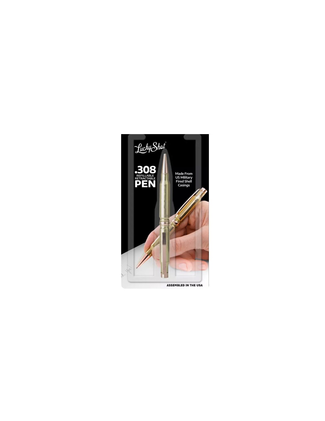 Stilou din două gloanțe originale de cal. 308 USA. Au fost folosite gloanțe reale ale armatei Statelor Unite. Funcționează cu cartușe Cross 8514.
