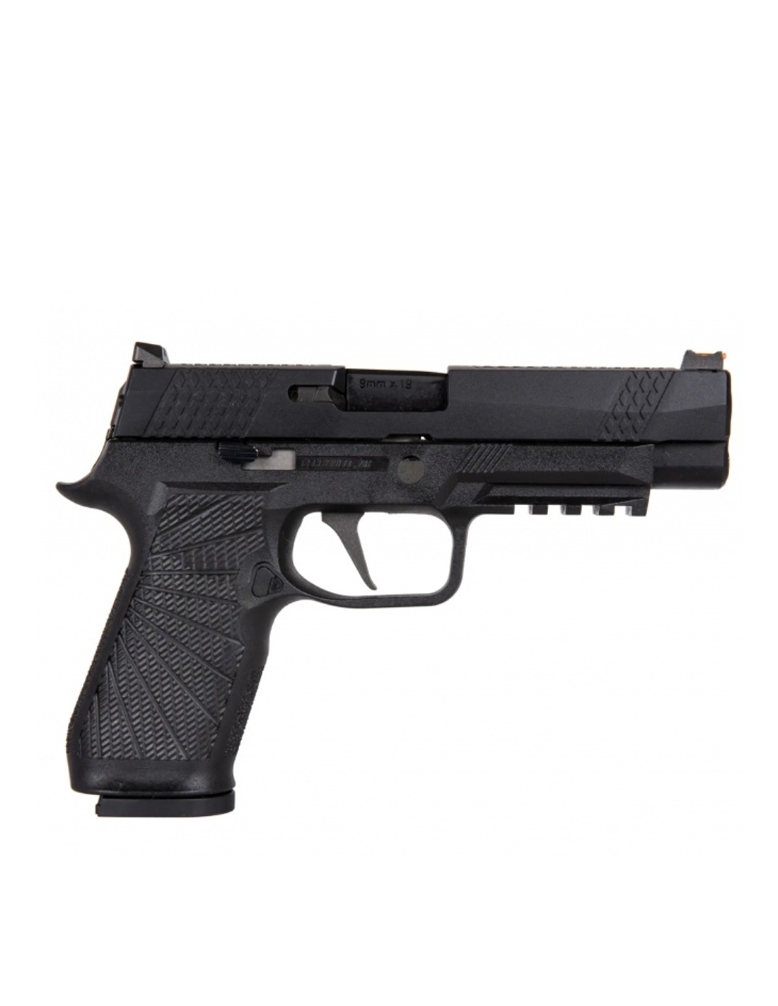 - - Carcasa întregului pistol este fabricată dintr-un polimer durabil întărit cu nylon, având o textură aspră
