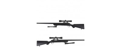 Sniper din materiale de înaltă calitate de la WELL. Replica vine cu un bipod și cu o lunetă de 4 x 32. Este fabricat din materiale care oferă un realism ridicat la atingere.