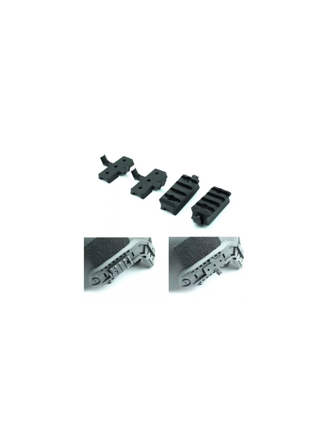 Un set de șine de montare de la FMA din materiale rezistente. Este compatibil cu căștile de tip FAST.